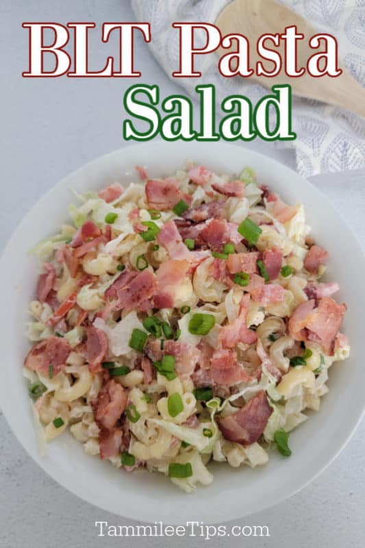Easy BLT Pasta Salad Recipe that takes minutes to prepare. You will love the combination of bacon, lettuce, tomato, and pasta with mayo dressing. It is the perfect salad side dish for potlucks, church picnics, or family dinners.