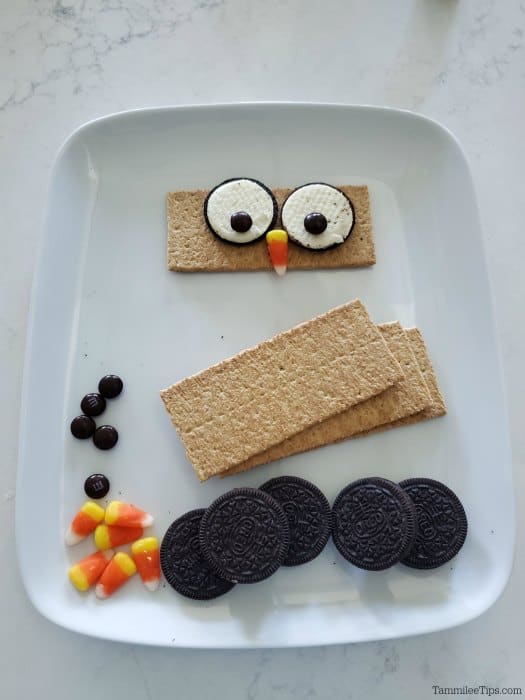 These Graham Cracker Owls are made with Oreos, Candy Corn and Graham Crackers are a fun treat for lunch boxes or at home snacks.
